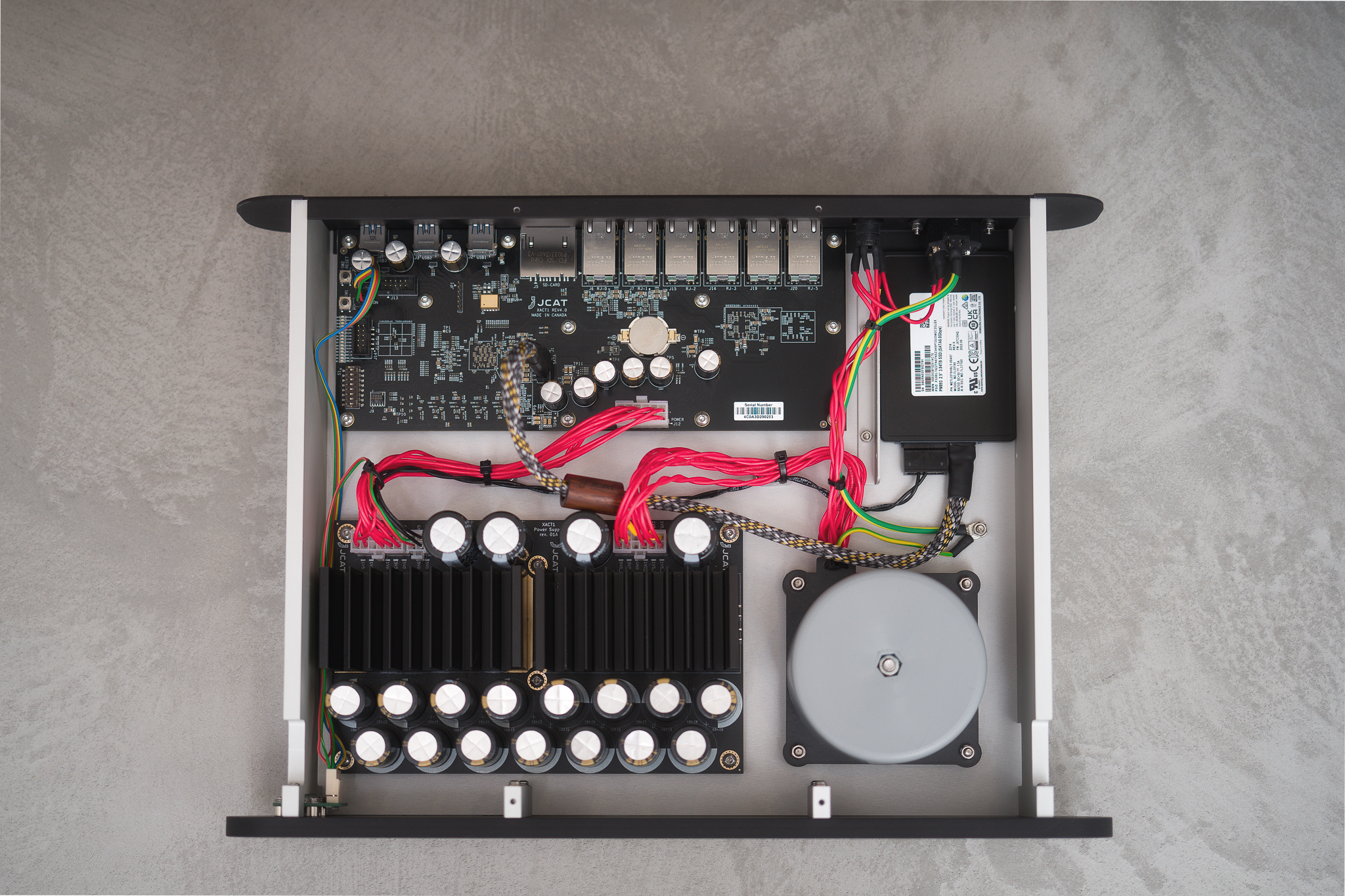 XACT S1’s proprietary audiophile-grade motherboard, apart from 100% linear regulation, features extremely low-jitter OCXO clock with ±5 ppb frequency stability - the same that is used in JCAT's XE cards. The extensive power supply section based on JCAT’s renowned OPTIMO linear PSU delivers 140 000 uF of capacitance provided by Nichicon’s flagship Muse and Fine Gold capacitors series, ideally suited for first class audio equipment. Internal SSD selected for its sound properties offers 4TB of storage and is connected to the motherboard via Reference SATA cable to ensure absolute best sound quality.